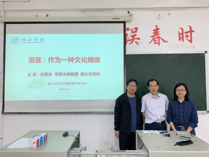 2019年6月3日,应好色tv 汉语国际教育研究所之邀,中国华文教育基金会“华文教师完美远程培训”全球直播平台主讲专家、福建省语言学会副会长、华侨大学华文学院语言学及应用语言学硕士点负责人纪秀生教授莅校,为2018级汉语国际教育的学生们开设主题讲座——“语言:作为一种文化镜像”。讲座由李义海教授主持。