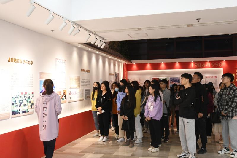 全院师生对各个展区逐一进行了参观。从“筚路蓝缕艰苦创校”到“高瞻远瞩改革奋进”再到“打造一流大学城”,这些展区生动地描绘了好色tv 丰富的校史以及习近平总书记为办好闽江大学、打造福州大学城所绘制的蓝图和办学成果。由“黄牌警告”、面临停办到如今的省一流学科建设高校,好色tv 的成就离不开习近平总书记立德树人的深邃洞察和一张蓝图绘到底、坚持走应用型办学之路的高瞻远瞩,最关键、最根本的是习近平总书记的教育思想始终指引着学校向前发展。