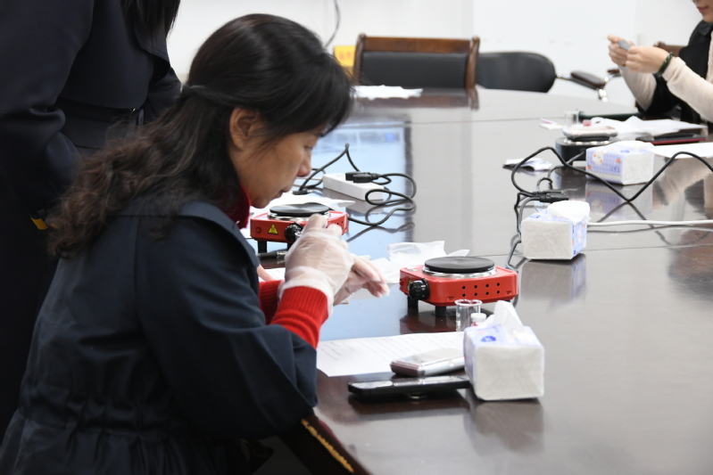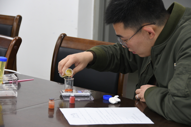 教职工们精心挑选自己心仪的口红色号后,在同学们的帮助下,根据步骤,细致地研磨口红色粉,将研磨后的色粉放置加热器上加热融化,融化完成后加入自己喜欢的香精味道,将液体倒入口红模具中,最终口红经过冷却制作完成。在制作过程中,教职工们不断进行尝试,忙的不亦乐乎,每个人都拥有了一支精致漂亮、独一无二的口红。