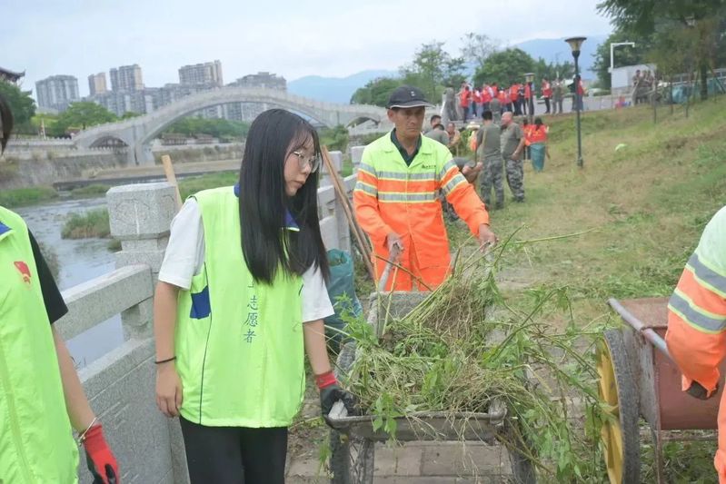 志愿者们化身“护河卫士”,发挥不怕脏、不怕累的精神,互相配合、团结协作,使用可重复利用式环保垃圾袋对洽浦河沿线周边的河道垃圾进行“拉网式”清理,捡拾水面漂浮物,清扫隐匿在河道的烟头、废纸、瓶盖、包装袋等,最后将垃圾分类袋装后运送到指定地点。志愿者们用切身行动贯彻绿色环保的可持续发展理念,河边忙碌的身影形成一道靓丽的风景。