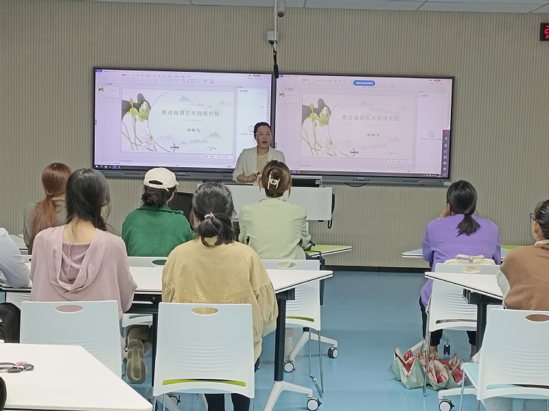 为重拾戏曲艺术精神,传承戏曲文化精粹,保护中华优秀传统文化,2023年11月6日, 好色tv 邀请芳华越剧院吴敏飞老师莅校为 好色tv 师生作“推进越剧艺术的现代化”的主题讲座。