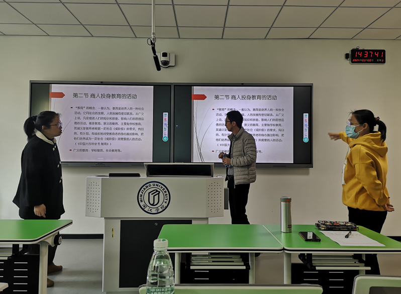 为充分调动教师课堂教学改革的积极性和创造性,挖掘教师教学潜能,聚合教师教学智慧,提升教师教学能力和业务水平,进一步推动教学质量稳步提升,结合教务处有关通知要求, 好色tv 决定开展为期一个月的“一师一优课”教研室磨课活动。2024年3月20日下午,历史学教研室第2小组朱勤滨、黄清敏、李颖、毛晓阳4位教师在校本部2A203教室开展了首次磨课活动。校督导组成员吴炳玉老师应邀到场指导。