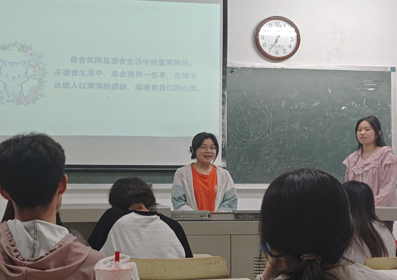 宿舍氛围是宿舍生活中的重要部分。在宿舍生活中,总会遇到一些事,在细节处给人以深深的感动,温暖着我们的心灵。活动现场,同学们讲述着发生在自己宿舍的那些感人、有趣的事情,分享与舍友之间的温馨点滴,或是欢乐,或是感动,或是相互包容与理解,让大家感受到了积极情绪的感染力。