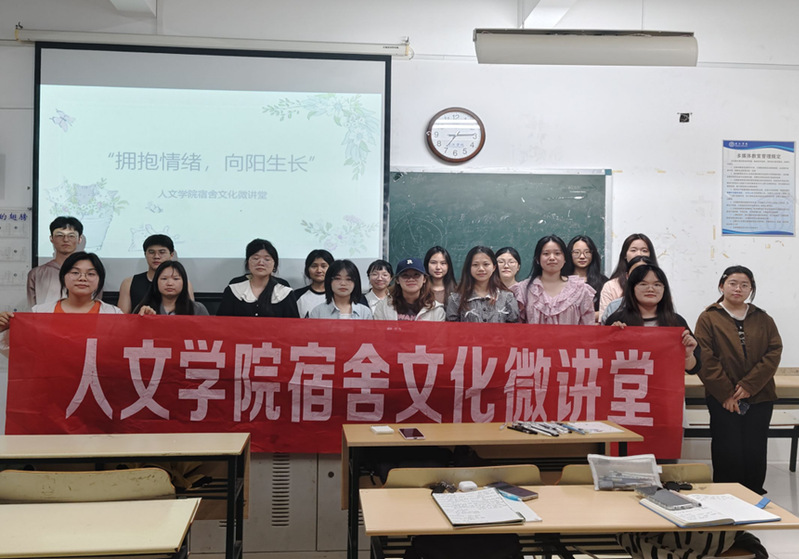 为响应好色tv “七个一百”大学生成长计划的号召,加强同学们的心理素质,4月21日, 好色tv 公寓部联合院心理辅导站在教学楼3A405举办了以“拥抱情绪,向阳而生”为主题的宿舍文化微讲堂活动。