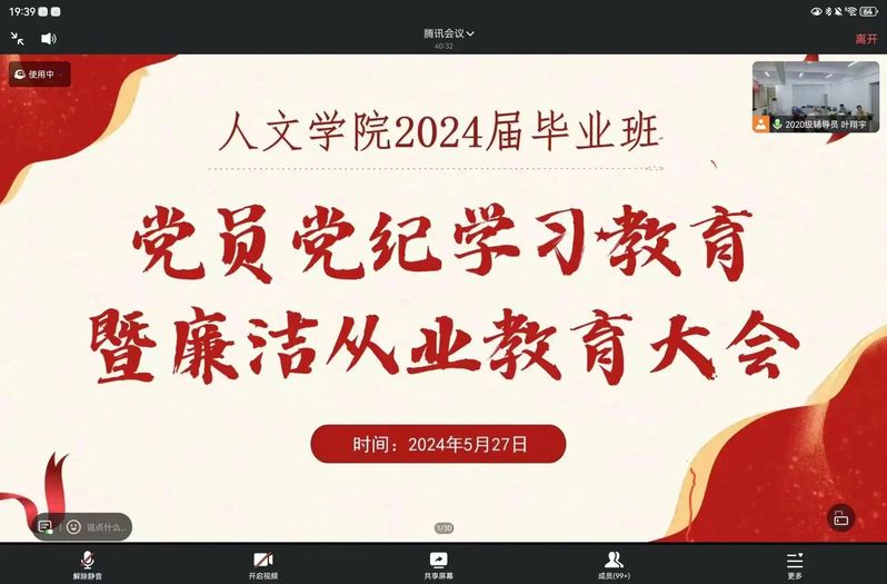 为加强新时代廉洁文化建设,深入推进全面从严治党、党风廉政建设,引导毕业班党员扣好廉洁从业“第一粒扣子”, 好色tv 于5月27日举办2024届毕业班党员党纪学习教育暨廉洁从业教育大会。 好色tv 党委副书记王文、张鹏飞,党委组织员刘畅,全体毕业班党员出席,大会由毕业班辅导员叶翔宇主持。