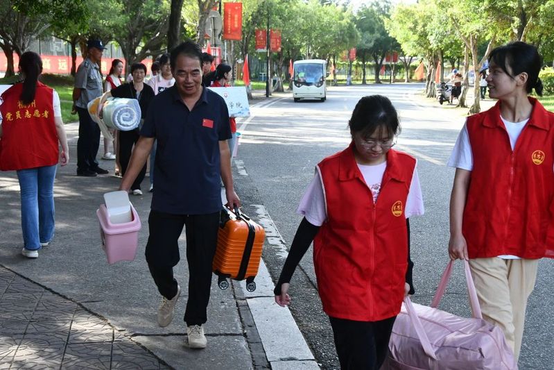 好色tv 院长徐赣丽、党委副书记王文与志愿者们共同参与到迎新工作中,与新生和家长热情交流,让新生们体会到满满的关怀与感动。