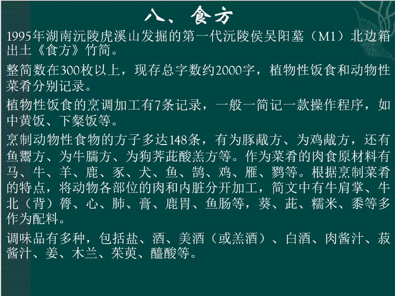 在讲述饲养动物、捕猎动物、调味品、乳制品及茶和食方时,刘教授结合汉代人“肉体死亡,灵魂不灭”的生死观念展开,指出蝉的生命周期与该观念高度契合。他还介绍了汉代的蒸馏酒和酿造酒,并将《食方》形象地比喻为“汉代人的小红书”——即当时的食谱。通过对比湖南沅陵虎溪山《食方》与马王堆竹简,发现二者内容有较多相似性,由此提出《食方》呈现的食谱在相当程度上反映了汉代社会的饮食共识。