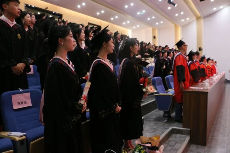 典礼尾声,全体人员肃立,齐声高唱校歌。激昂的旋律在会场回荡,宛如一曲壮丽的青春赞歌。歌声渐落,这场承载着梦想、感恩与祝福的毕业盛典圆满落幕。毕业生们将带着母校的深深嘱托与殷切期望,奔赴各自灿烂的远方。