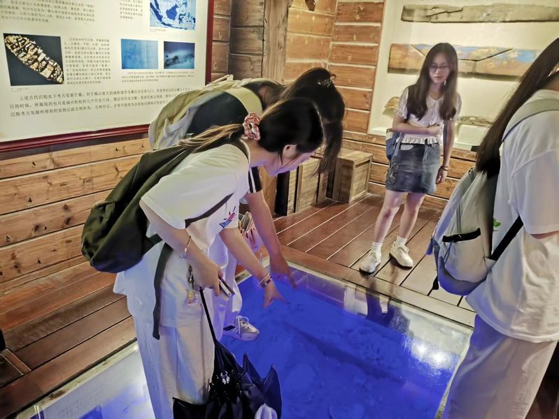 随即,同学们前往三坊七巷海上丝绸之路展馆。在这里,同学们具象地感受到船体模型的形态,并以考古视角探究“碗礁一号”水下沉船遗址出土器物。穿梭于展馆之间,同学们仔细观察每一件瓷器的纹饰。或驻足讨论,或俯身观摩,仿佛在进行一场时空对话。在实地参观之时探讨专业知识,加深了同学们对水下考古的理解。