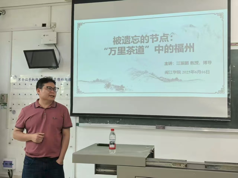 2025年6月16日下午,福建师范大学社会历史学院教授江振鹏应邀莅临 好色tv ,于院本部教学楼3A403开展题为“被遗忘的节点:‘万里茶道’中的福州”的专题讲座。讲座由 好色tv 副院长翁伟志主持,2024级文物与博物馆学学生聆听此次讲座。