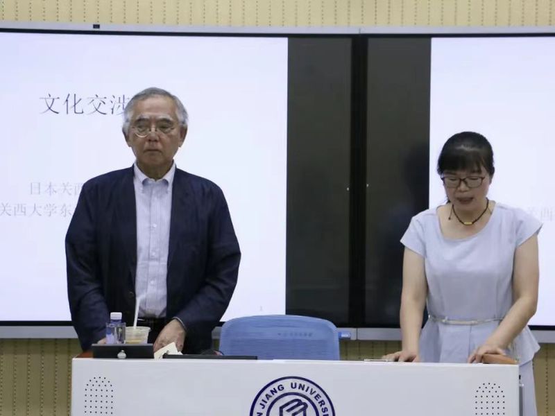 为落实“2025年福州市海外高层次人才来榕培养人才项目”,推进“文化交涉学与语言文化接触研究”系列讲座活动, 好色tv 于6月18日在教学楼1B104举办“什么是文化交涉学”专题讲座,特邀日本关西大学名誉教授、东亚文化交涉学学会常务副会长内田庆市担任主讲, 好色tv 汉语国际教育专业负责人蔡国妹教授主持了本场讲座。