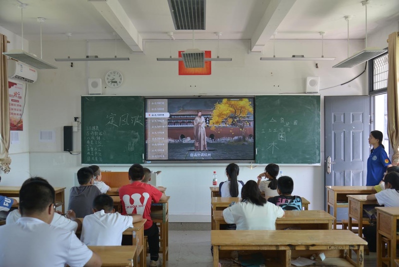 古诗歌谣课成为本次支教活动的亮点之一,实践队员以汉乐府经典诗作《长歌行》为教学切入点,通过生动有趣的讲解和互动,带领学生们走进古诗的韵律世界。课堂上,支教队员们不仅深入浅出地解析诗歌内涵,更通过多媒体展示等方式,让学生们真切感受到古诗的意境之美。这种寓教于乐的教学方式,激发了学生们对传统文化的兴趣和热爱。