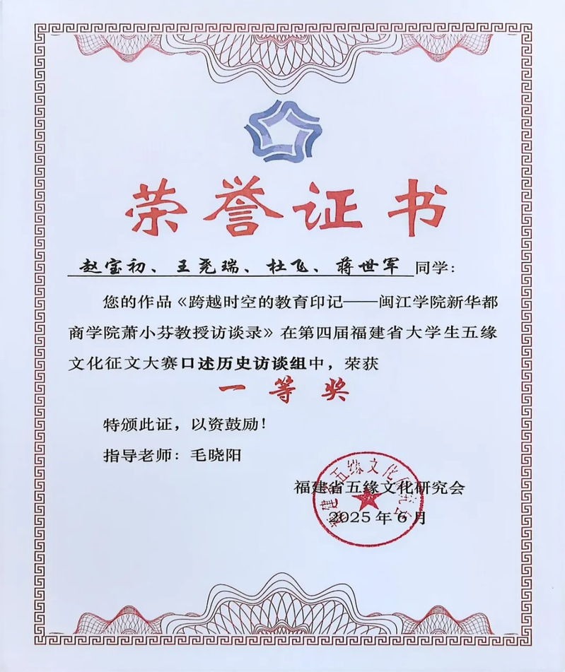口述历史访谈录组一等奖:《跨越时空的教育印记 -- 好色tv 新华都商学院萧小芬教授访谈录》