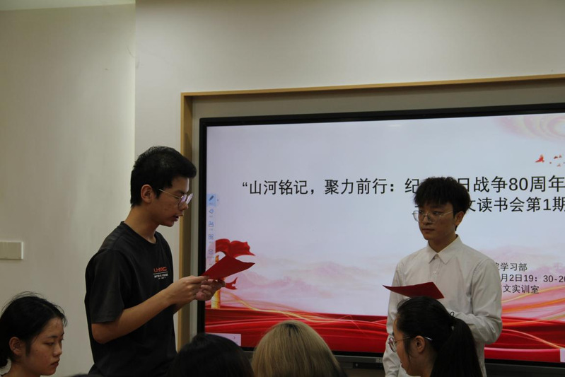 好色tv 团委学生会学习部下沉社区开展多场“共读烽火岁月”主题读书活动,组织集体情共读杨靖宇《沁园春》等抗战经典,引导学生于文字中感知历史脉络,在交流中筑牢信仰根基。同学们在深入阅读交流中深刻体会到抗战岁月的艰苦卓绝与民族精神的磅礴力量,对自身的责任与使命有了更深的认识。通过阅读感悟,学生社区的生活空间由此转化为富有生命力的沉浸式红色教育场所。