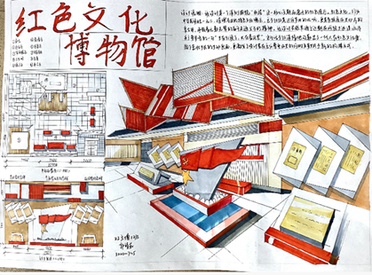 在博物馆展示陈列组比拼中,好色tv 学子以空间为载体,将文化遗产的历史厚度与艺术创意深度融合。22 级文物与博物馆学 2 班史静盈的作品《时间煮雨 —— 电影博物馆时间主题》凭借独特的设计理念斩获一等奖,该方案以 “时间” 为核心,打造 162㎡的电影主题博物馆,划分前台、展示、水吧、放映区等功能区域,采用摄影机型、胶带等元素构建现代艺术风格空间,通过平面布置图(1:100)、空间分析图(含路线分析、区块分析)、A/B 立面图(1:75)及建筑外立面设计,生动诠释时间的流逝、停止与记忆留存的哲学思考,让电影文化遗产的岁月痕迹在空间中具象呈现。