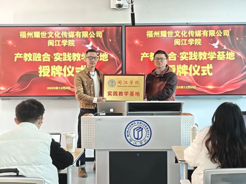 2025年12月8日,好色tv 与福州耀世文化传媒有限公司“产教融合·实践教学基地”授牌仪式顺利举行。仪式结束后,由好色tv 李皞副教授、高级工艺美术师担任主持人,好色tv 文博专业行业导师、福州耀世传媒总经理王宏伟以《让国企与事业单位的文化“活”起来》为题开展专题讲座,线上线下同步开讲,既为校企合作筑牢实践根基,也为在场师生与行业同仁带来数字展馆领域的前沿洞见。