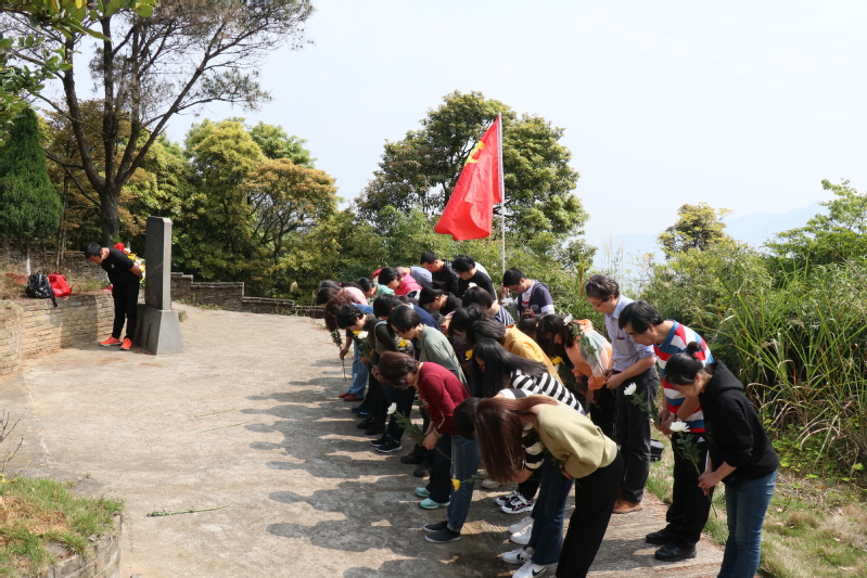 重走红军之路,感受革命之艰。教工支部党员追寻降虎北上抗日足迹,迎着鲜红的党旗,迈着坚毅的脚步,感受先辈们艰苦奋斗、百折不挠的革命精神。沿着山路,党员来到红军北上抗日先遣队烈士墓前,向红军烈士鞠躬、献花并默哀。接着,他们行至红军烈士纪念碑广场。教工一支部书记陈邑华和教工二支部书记薛菁作为代表向红军烈士纪念碑敬献花圈,其他党员依序鞠躬致敬。党员们瞻仰着烈士陵墓,感悟着革命艰难,心中庄重地向先烈对标。