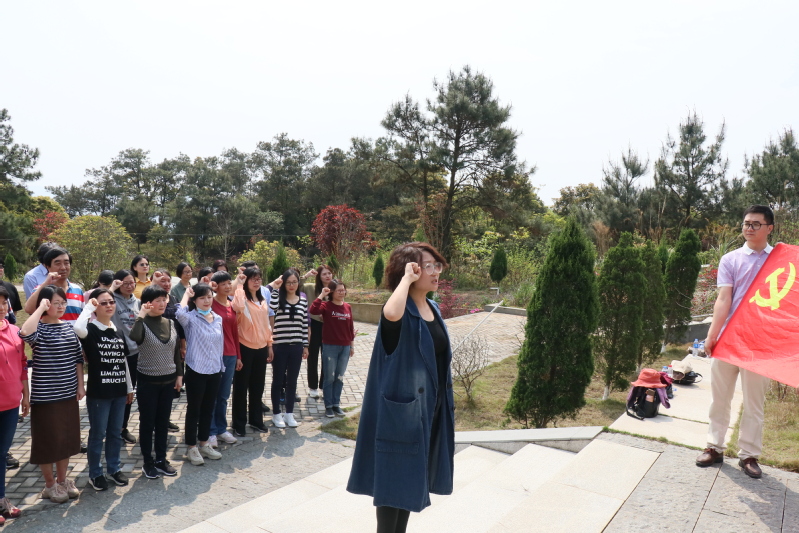 在表达对革命烈士的哀思后,党员们面向纪念碑,在党旗前高举右手,宣读入党誓词。庄严的誓词和铿锵的声音是对入党初心和使命的最好重温,也号召着在场的教育工作者不断增强责任感和使命感,以昂扬的姿态、进取的精神和育人的成绩践行对党和人民的誓言。