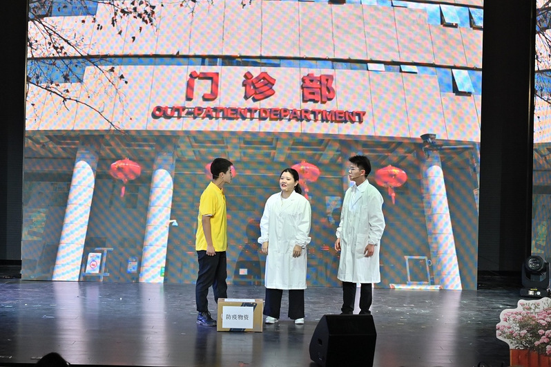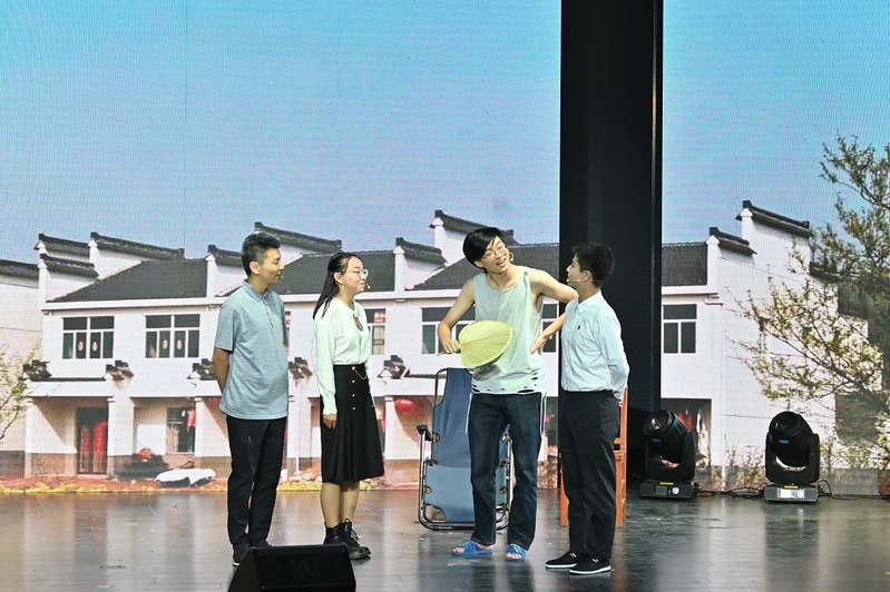 《她编的草鞋》演绎了红军战士携带着恋人的一双黄麻草鞋,一路征战,待革命胜利时,草鞋依旧,恋人已为革命牺牲,展现在战火淬炼下的家国情怀和人民力量;《甜蜜的果园》呈现了基层干部扎根基层服务农村,引导农民扶志和扶智,农民在党的领导和政策支持下脱贫致富,走向小康生活的幸福历程;《我们是一家人》赞颂了奋斗在抗疫斗争一线的医护人员和上下同心、共克时艰的中国人民,那毅然奔赴和默默坚守的背后是历久弥新的中国精神;《觉醒年代》结合情景朗诵,表达了国家危亡时马克思主义没有辜负中国,建设发展时期更没有辜负中国,青年是中华觉醒的先锋,更是革命事业不断前进的力量……同学们在生动、深刻、深情的红色戏剧演出中激发奋斗意志,感悟理想信念力量。