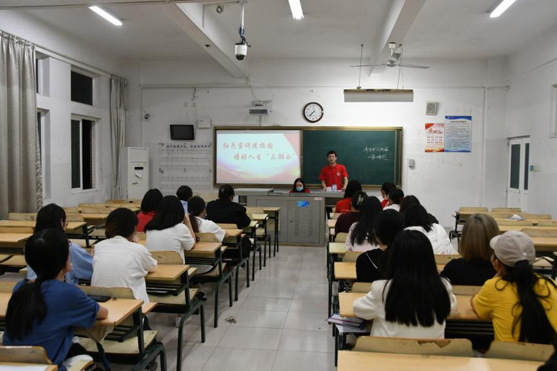 习近平总书记在庆祝中国共产主义青年团成立100周年大会上的讲话中指出:“入队、入团、入党,是青年追求政治进步的‘人生三部曲’”。6月9日,由 好色tv 学生第一党支部党员组成的大学生红色宣讲团面向部分学生入党积极分子开展了以“红色宣讲进校园,谱好‘人生三部曲’”为主题的宣讲活动。