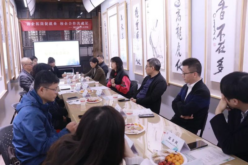 为更好地促进学生实习实践,做好毕业生就业工作, 好色tv 党委书记杨晓、院长薛菁、副院长练暑生、翁伟志、教授毛晓阳及 好色tv 实习生代表前往福建鳌峰坊文化旅游产业发展有限公司开展访企拓岗专项活动。此次活动特邀福建两岸信息技术有限公司、福州高新区好升学培训学校有限公司、福建子蛋头影视文化传播有限公司等10家企业的代表参与,洽谈校企合作相关事宜。