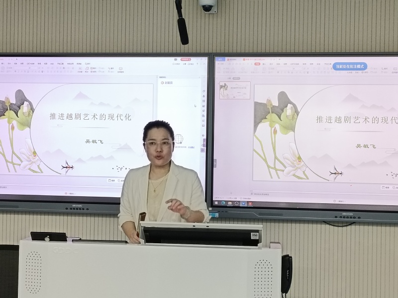 为重拾戏曲艺术精神,传承戏曲文化精粹,保护中华优秀传统文化,2023年11月6日, 好色tv 邀请芳华越剧院吴敏飞老师莅校为 好色tv 师生作“推进越剧艺术的现代化”的主题讲座。