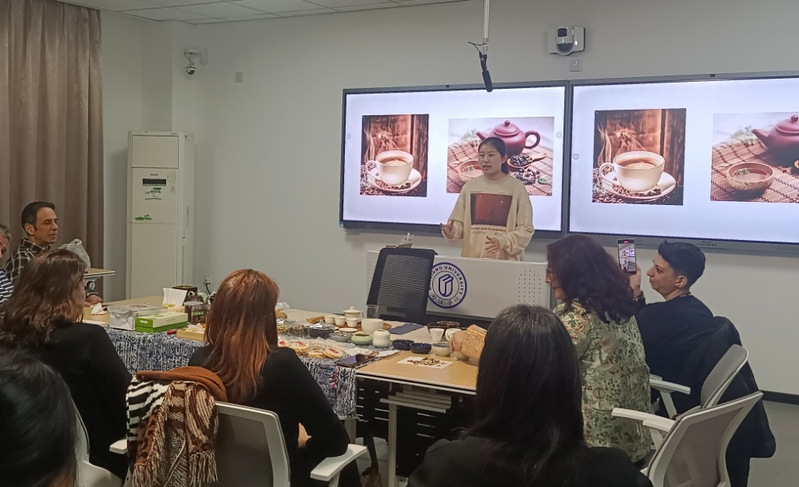 2023年12月6日, 好色tv 汉语国际教育专业学生在刘敬老师的带领下,为好色tv 数字国际学院塞浦路斯欧洲大学的外教们准备了一场特别的茶文化体验分享会。