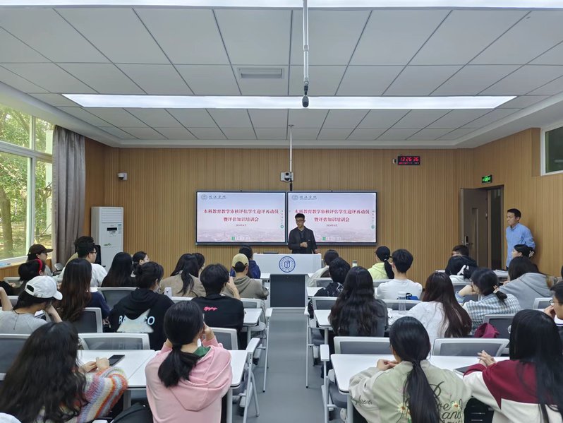会议还对审核评估应知应会等知识做了培训说明。本次会议是 好色tv 开展本科教育教学审核评估学生迎评工作的再次动员,也是贯彻落实学校本科教育教学审核评估线上评估工作部署会精神的具体举措之一。新学期开学以来, 好色tv 在广大学生中扎实开展迎评促建宣传培训,通过各年级大会、学生干部会、班委会等多种形式开展迎评动员;参照学校应知应会提纲编制 好色tv 应知应会(学生版)学习手册,并通过班会、团日活动等形式开展学习,还通过易班组织开展应知应会答题活动。同时,按照评估要求,重点对学生干部、党员、入党积极分子、团学干部等学生群体分别开展评估应知应会知识培训,要求熟知掌握。此外,还统筹做好学生宿舍区、活动场所迎评氛围营造。接下来,学院将以迎接本科教育教学审核评估为契机,坚持以学生为中心,聚焦应用型“新文科”人才培养目标,认真抓好各项工作落实,形成学院上下联动、全员参与、全面提升的工作格局,持续推进“以评促建、以评促改、以评促管、以评促强”。