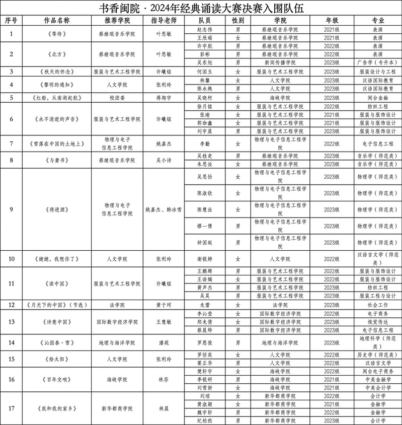 为推进“书香闽院”建设,将中华优秀传统文化带进校园,引领大学生感受伟大中国文化,2024年4月13日,中共好色tv 委员会宣传部、好色tv 语言文学工作委员会、共青团好色tv 委员会、 好色tv 主办的书香闽院·2024年经典诵读大赛复赛在融侨文体中心展开。