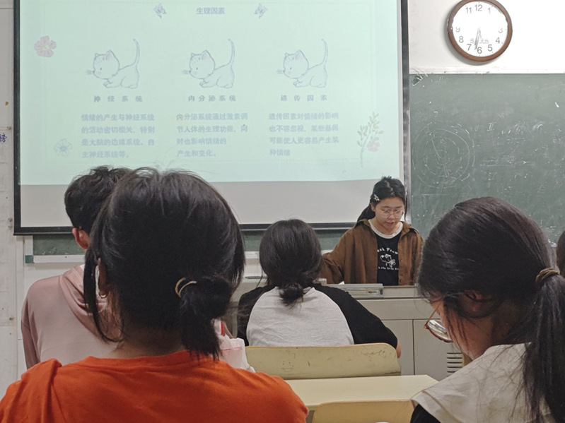 心理辅导站陈淑琼同学从情绪的产生、对人的影响、如何调理情绪以及情绪感悟四个方面向大家介绍心理健康的重要性,以科普的形式帮助同学们正确认识和处理自己的不良情绪,进而加强同学们之间的情绪正向管理。
