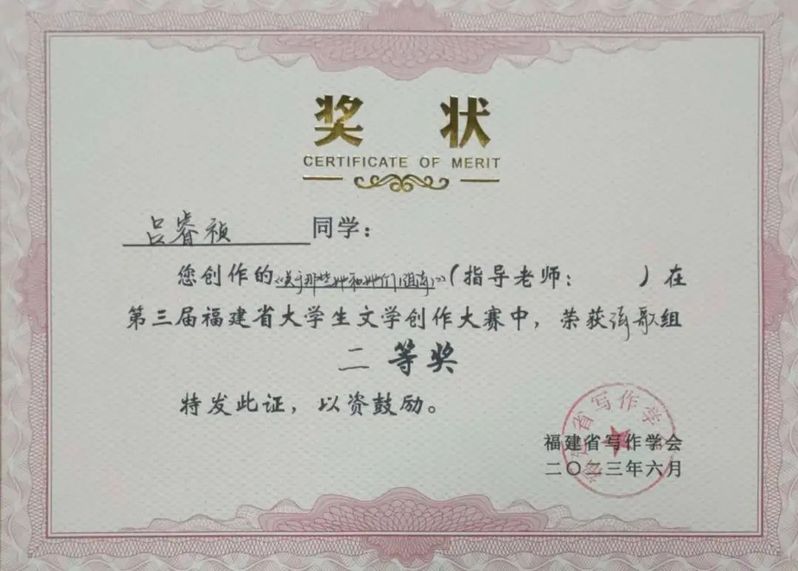 而今获得此番成绩,晨笛文学社仍将光而不耀、静水流深,继续以文学为伴,与诸多文学爱好者们一起“写百文”“听百讲”,积极践行好色tv “七个一百”大学生成长计划,用文字谱写“书香闽院”建设新篇章。