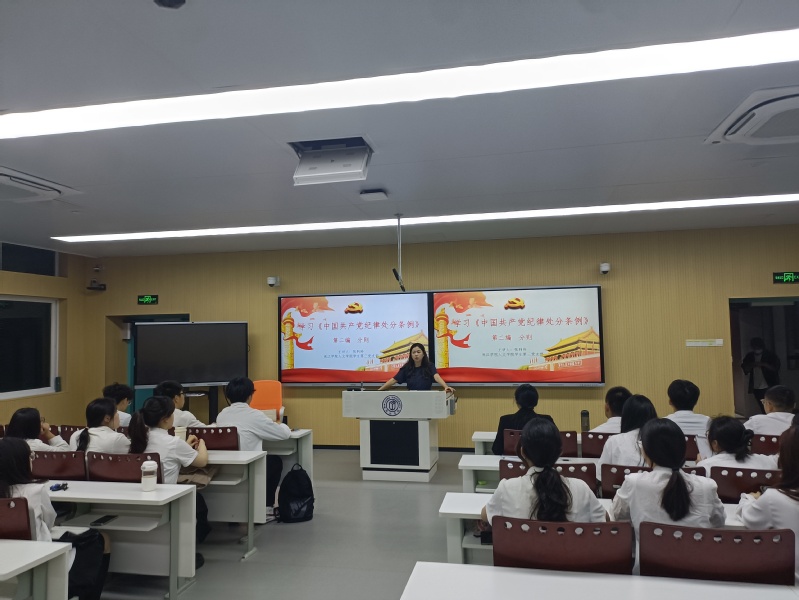 学生第二党支部书记杨家豪通过知识问答的形式,深化了党员对加强党的纪律建设重要性和忽视党纪、违反党纪问题危害性的认识。他指出,再严明的纪律,不执行、不遵守、不维护,也是一纸空文。纪律不是可松可紧的橡皮筋,不是可有可无的空摆设。只有时刻维护党的纪律,坚决同一切违反党的纪律的行为作斗争,对违反和破坏党的纪律的行为绝不姑息迁就,不搞上下有别、内外有别,才能真正把全面从严治党要求落到实处。