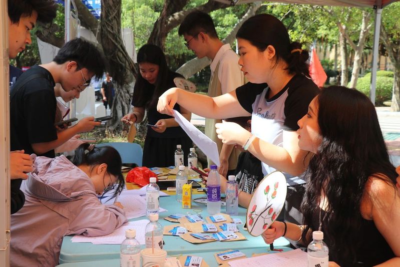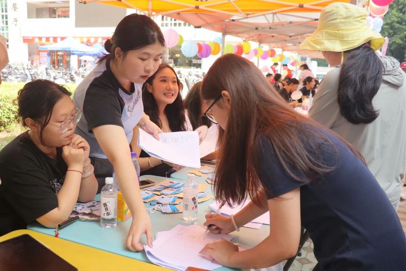 在迎新工作开展的地点,班导和志愿者们井然有序,依次进行着新生到校的登记工作,引导新生签到、确认信息和填写相关资料,并为新生分发宿舍钥匙、学生卡等必备物品。