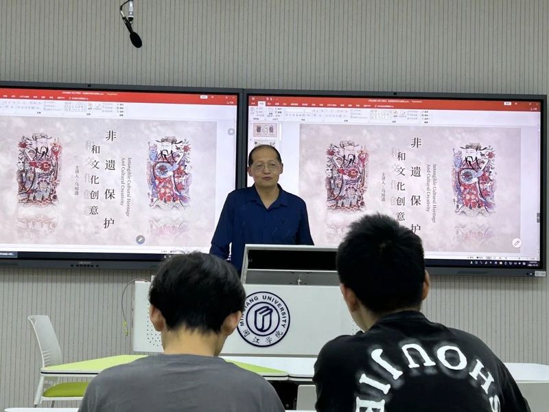 马知遥教授绘声绘色地向大家讲解了非遗文化。让同学们学习到从 “世代相传”、 “社区和群体” 、“互动”和“再创造”、“认同感”和“持续感”四个方面来辨别真假非遗。用布老虎这一文化意象的具象化表现,展现古代民间生育、结婚、端午节的传统习俗,感受历史的绵长与温度。通过刘海兰、杨雅琴织绣布老虎的故事,体现非遗匠心传承。他认为当前非遗村落保护需要将非遗文化和人同时保护起来,不能顾此失彼。将现代工业技术用到非遗手工艺品的批量生产,是不能替代非遗手工制作中蕴含的温度与价值的。