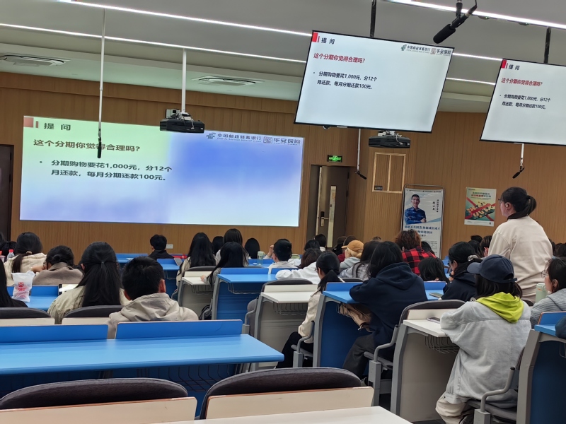 为普及金融知识,提升 好色tv 学生金融素养与风险防范意识,3月12日下午, 好色tv 组织学生参与华安保险在教学楼3B114开展“资助育人筑梦想·金融赋能启未来”金融知识讲座。