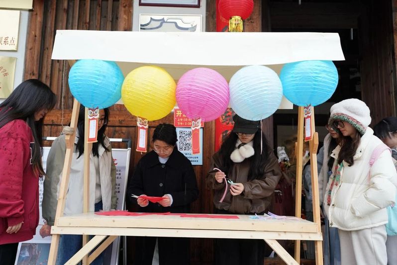 民俗协会的同学们举办了传统花艺制作游戏,吸引众多同学前来体验。同学们用各种彩纸制作花朵,只见她们手指翻飞,一朵朵精致的花朵便在指尖绽放,栩栩如生。剪纸的同学们则巧思妙剪,或勾勒花瓣的轻盈,或雕琢枝叶的纹理,一张张彩纸在他们手中化作姿态各异的花卉图案,仿佛春天的绚烂定格于纸间。周围围满了好奇的同学,纷纷驻足欣赏,不时传来惊叹和欢笑。