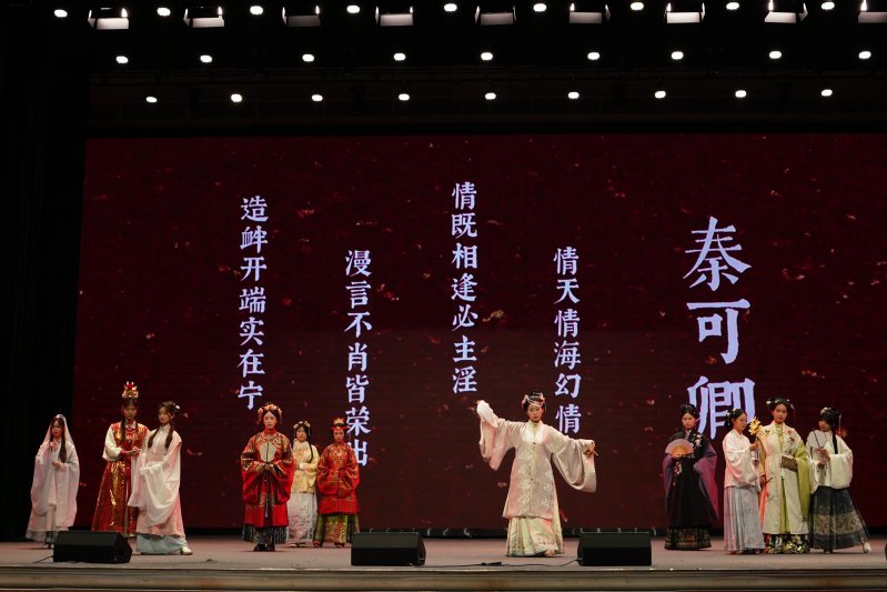 在精彩的表演环节中,汉服协会带来的《红楼梦》主题汉服走秀精彩纷呈。模特们身着精美的服饰,以优雅的仪态完美再现了大观园中的经典场景,通过服饰文化的生动展示,带领观众穿越时空,领略中国传统文化的博大精深。
