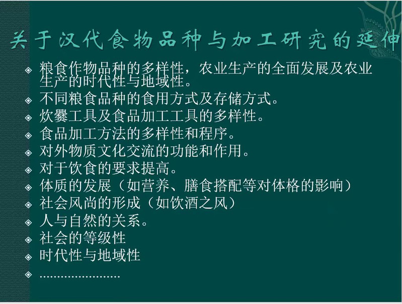 在蔬菜和水果方面,刘教授阐述了“常挖常新”的研究思路。如萝卜、西瓜在文献记载中出现于唐宋时期,但考古资料显示,甘肃泾川汉墓出土了萝卜雕像,安徽六安西汉王墓发现了西瓜籽。此外,辛追夫人和刘贺的遗骸中均发现香瓜籽,这一实例印证了汉代人饮食结构的丰富性。