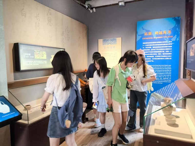 随即,同学们前往三坊七巷海上丝绸之路展馆。在这里,同学们具象地感受到船体模型的形态,并以考古视角探究“碗礁一号”水下沉船遗址出土器物。穿梭于展馆之间,同学们仔细观察每一件瓷器的纹饰。或驻足讨论,或俯身观摩,仿佛在进行一场时空对话。在实地参观之时探讨专业知识,加深了同学们对水下考古的理解。