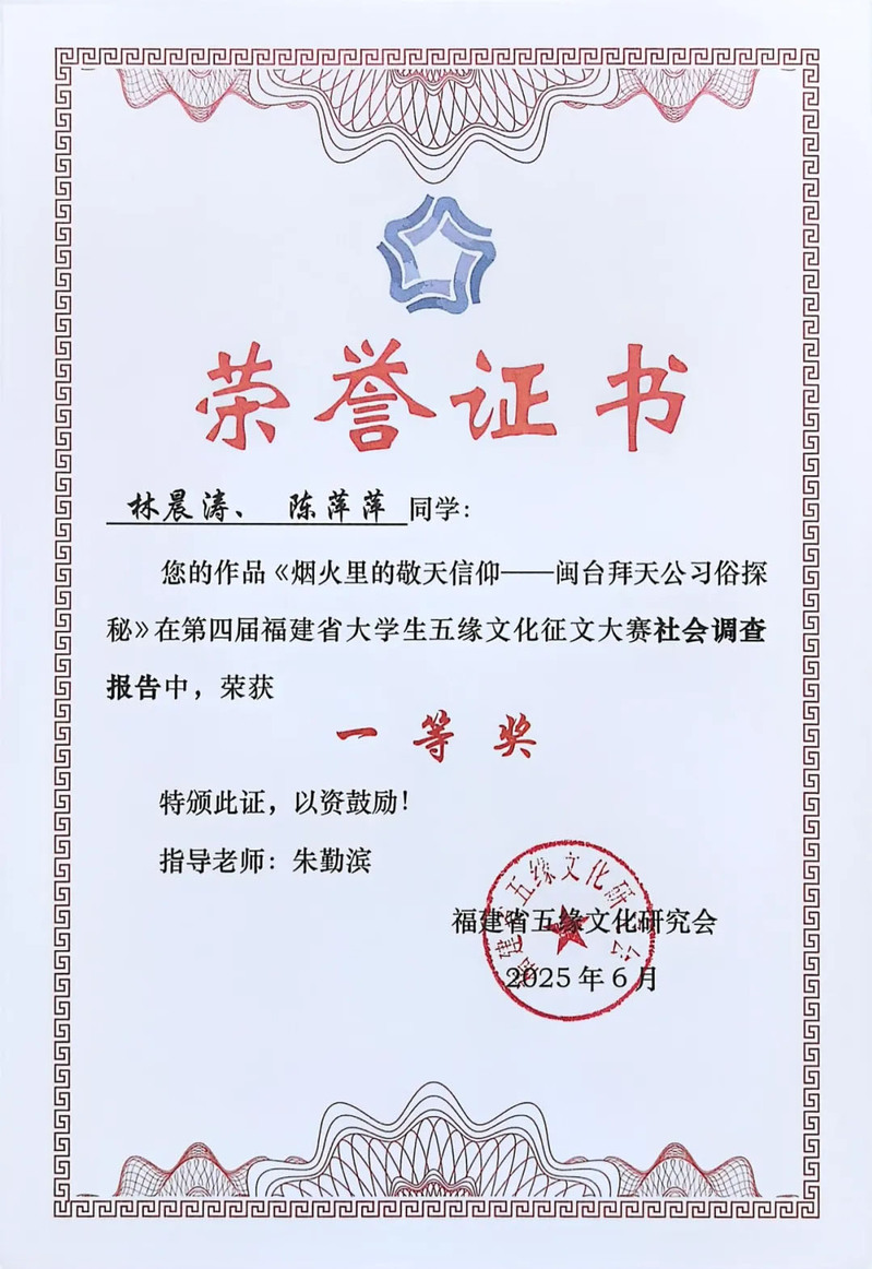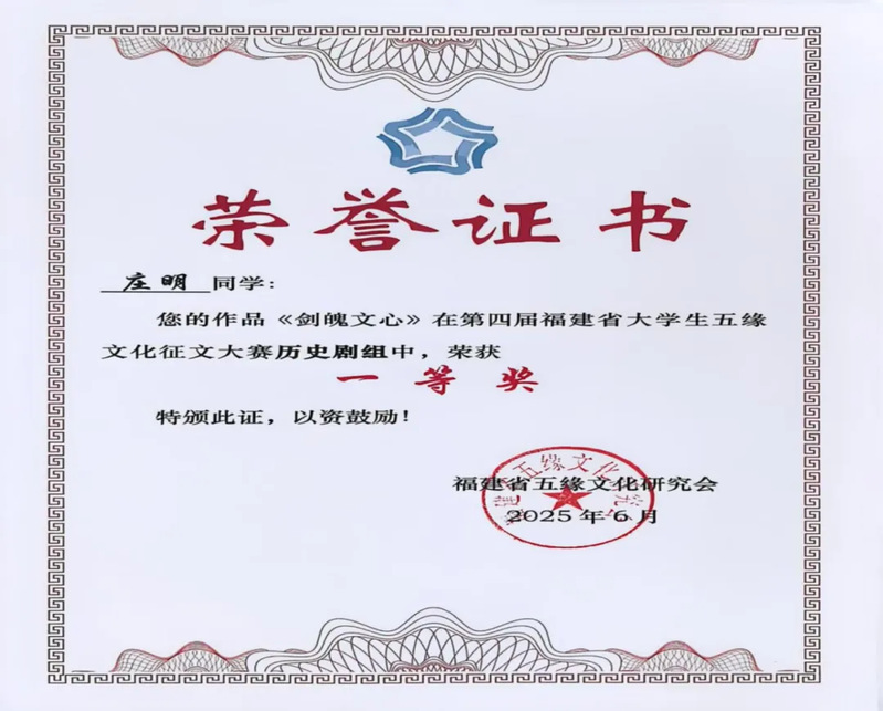 近日,第四届福建省大学生五缘文化征文大赛圆满落幕。本次大赛由福建省五缘文化研究会主办、 好色tv 历史学系承办。经过数月的征集与严格评审,来自厦门大学、福建师范大学、闽南师范大学、好色tv 等多所高校的41个优秀作品分获各类奖项。其中,好色tv 人文学子表现突出,在学术论文、社会调查报告、口述历史访谈录、历史剧、影像志、家史等多元赛道中全面发力,获奖数量与质量均位居前列,展现了在五缘文化研究领域的深厚积淀与多元创造力。