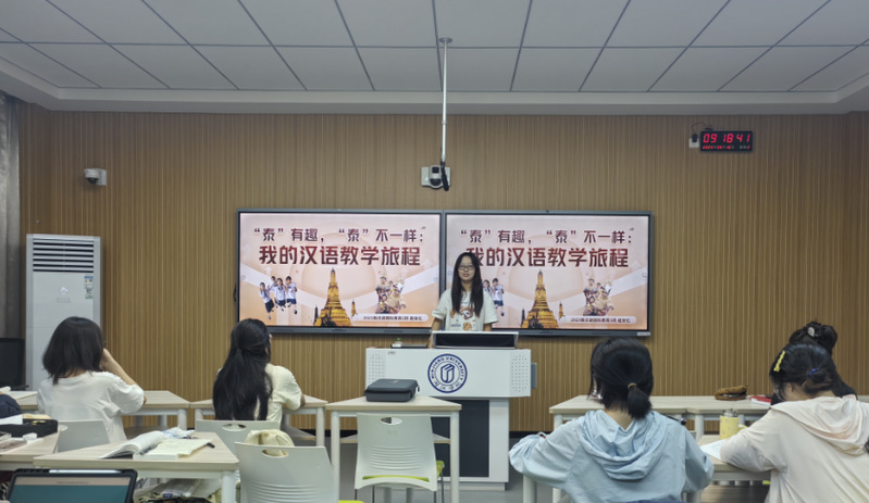 2025年9月9日上午,杨欣晔、赵安亿在《第二语言课堂教学概论》课程中分享了此次泰国实践的经验。