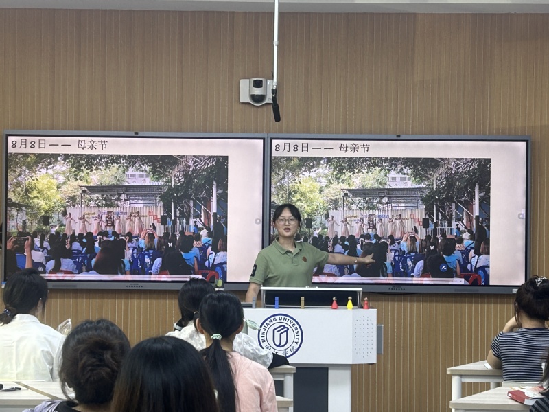 杨欣晔以《跨越山海,收获成长》为主题,通过丰富的图片与视频资料,生动介绍了泰京三育公学的办学特色、校园氛围、实践日常与教学实践,分享了跨文化沟通案例及泰国风土人情,体现出对异文化的理解与尊重。她表示,这次实践不仅深化了对专业的认知,更是一次自我突破与成长的文化之旅,实现了“跨越山海”、知行合一的蜕变。