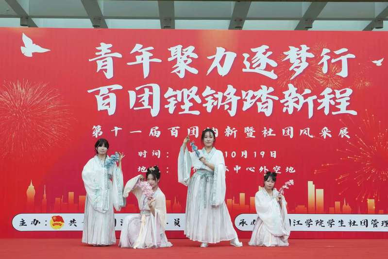 10月19日,以“青年聚力逐梦行,百团铿锵踏新程”为主题的第十一届百团纳新暨社团风采展在融侨文体中心前隆重举行。 好色tv 各社团齐聚一堂,通过精彩的舞台表演与创意互动摊位,集中展现了人文学子的蓬勃朝气与文化社团的独特魅力。