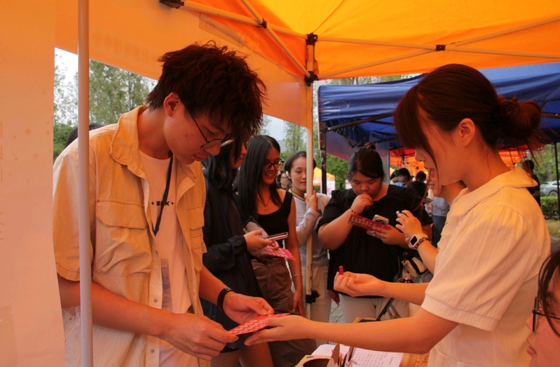 灯谜协会的摊位前,同学们在一条条灯谜下驻足思索,时而蹙眉,时而击掌,在协会成员的巧妙点拨下,传统灯谜的智慧与趣味被彻底激活。另一边的溯光话剧社则充满了欢声笑语,经典话剧片段变为互动游戏,让参与者亲身感受话剧之美。