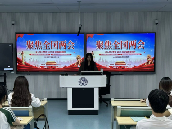 为深入贯彻全国两会精神,3月26日, 好色tv 学生第三党支部在教学楼1B208举办两会精神专题学习会,通过创新学习模式,引领成员深刻领会两会要义。