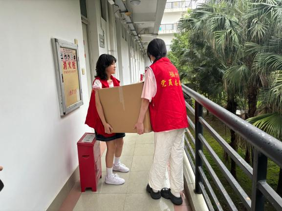 2025年6月8日,活动正式拉开帷幕。在立德社区4号楼,党员们早早集结完毕,身着统一的志愿者红马甲,宛如一道亮丽的红色风景线。他们热情地迎接每一位毕业生,穿梭在宿舍楼间,主动帮助毕业生将沉重的行李搬运至一楼大厅。有的党员肩扛大包,步伐稳健。有的党员手提小件,快速穿梭。大家分工明确、团结协作,以饱满热情的状态投入到搬运工作中,高效有序的行动充分展现了新时代青年党员的风采。下午党员志愿者们又转战博览社区4号楼。这里,毕业生们已将书籍打包完毕,党员们迅速行动起来,协助毕业生将这些承载着知识与回忆的书籍搬运至一楼大厅。骄阳似火,党员志愿者们肩扛手提、往返奔波,汗水湿透了衣衫,但他们毫无怨言,用汗水浇灌初心,以行动诠释担当。